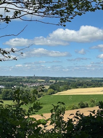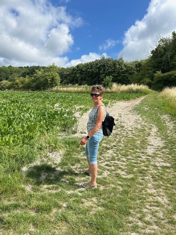 Die avond zitten we tot middernacht buiten want het blijft lang warm. Unieke zomeravonden zijn dit. De volgende dag staat een wandeling op het programma. Eerst bezoeken wij boerderijwinkel de Akkerhof naast de camping. Hier halen we voor een paar dagen vlees, salades, fruit, brood etc. Gemoedelijk inkopen doen en deze vrouw geeft leuke 🥾tips!