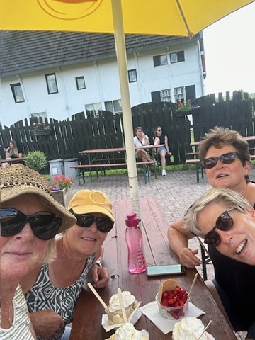 De volgende dag eerst op de fiets naar de Lidl om nog een paar kleine dingentjes te halen. We overleggen met onze vrienden wat we gaan doen met het eten en daarna gaat Wiekie aan de slag om een rodekool- en meloensalade te maken. We nemen alles mee op onze fietsjes en op richting Landalpark Vaals, vier minuten fietsen😊. Wij vinden het te warm om actie te ondernemen maar een ijsje eten in Vijlen, bij de Wingbergerhoeve kunnen we niet weerstaan. Mooi fietstochtje daarnaartoe. Mocht je daar nog nooit geweest zijn (grote kans…) dan is dit echt een aanrader. Even de rij trotseren maar dan…. 🍨!