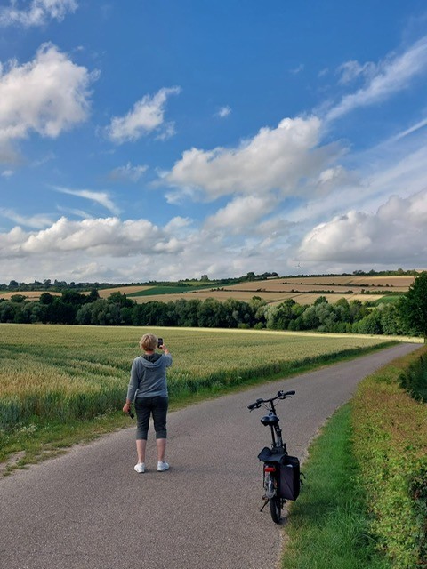 Vanaf de camping lopen we over een bruggetje en zijn al snel in Duitsland. Toevallig hangen er oranje lintjes in de bomen en dit lijkt op route die wij kunnen volgen😉. Zo gezegd, zo gedaan en we wandelen een prachtig mooi gebied in. Uiteindelijk maken we een tocht van 13 kilometer en stoppen dan maar want het is in de middag wel heel erg warm.