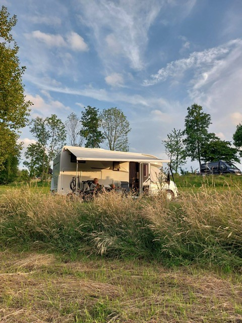 Heerlijke dag gehad, deze hebben we maar weer in de pocket! Maandagochtend hebben we tot 12.00 uur de tijd om te vertrekken en op ons gemakje maken we de camper en onszelf vertrek klaar. Marieke van de camping in Weerselo heeft ons plekje mooi gemaaid (achter de camper) en het is ook weer fijn om terug te komen. Deze week heeft Wiekie vier late diensten en we zoeken, net als velen, zoveel mogelijk de schaduw op. Vanochtend, tijdens het maken van deze blogpost voelt het buiten enigszins koud voor onze camper. Wij hebben de middag- en avondzon.