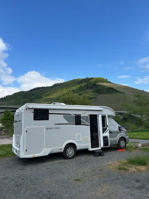 Wat hebben wij het mooi gehad aan de Moezel. Nadat wij de Geierlay hangbrug in Mörsdorf verlaten, rijden we richting Zell om daar in ieder geval boodschappen en de was te doen bij een groot winkelcentrum aldaar. Het is mooi weer en we genieten van de korte rit daarnaartoe. Het rijden in ons ‘huissie op wielen’ blijft een feestje, alhoewel het heel af en toe ook een uitdaging kan zijn.