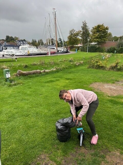 Voordat we gaan, rijden we eerst nog even langs een garage in Weerselo om de bandenspanning te laten controleren en het oliepeil. Ook maken we een afspraak voor eind maart 2026 om de camper te laten keuren en voor een onderhoudsbeurt. Geeft rust. Dan eindelijk op naar Sneek. Wij blijven hier uiteindelijk zes nachten. Heerlijk op stadcamping De Domp. Vanaf deze camping ben je zo in de stad en (schoon)zus woont op 1,5 km afstand.