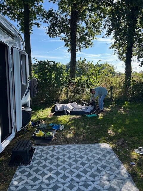Wij zijn weer op pad! De laatste dingetjes in Weerselo afgerond. Schuurtent schoongemaakt en opgeruimd, scooter ergens onderdak gebracht en afscheid genomen van het mooie Weerselo! Tot april! Eerst op donderdag 2 oktober nog even langs de handtherapie. Gelukkig mag dit vanaf nu digitaal en kunnen wij die middag richting Sneek! Wel nadat wij nog even geluncht hebben met ma en Jo. Gezellig!