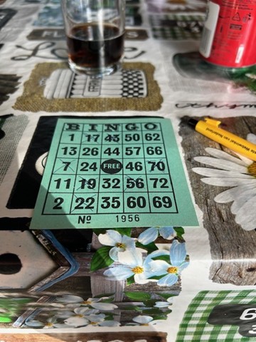 Wiekie treedt in de voetsporen van haar moeder want zij wint gelijk een prijs. Zo grappig. Ik zit er voor spek en bonen bij, ook leuk🤔. Past bingo bij ons?? NEE. Is het gezellig? ja. De BBQ volgt na de bingo en deze is meer dan prima. Heerlijke salades, vlees, dessert, alles met zorg gemaakt. Fijne camping en fijne mensen! ☘️