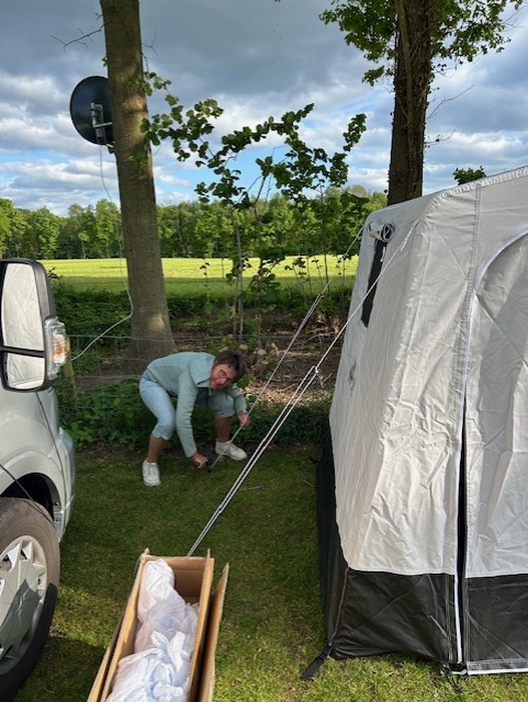 Na bezoek van moeders en Berend haar partner, zetten wij de schuurtent op. De fietsen passen hier mooi in alsmede de stoelen, tafel en hopelijk ook onze aangeschafte scooter🛵. Deze wordt rijklaar gemaakt en kan morgen opgehaald worden, blij mee! Dit geeft ons vrijheid om sneller ergens te komen en grotere afstanden te overbruggen. Deze week fietst Petra bijvoorbeeld op 1 dag 2x heen en weer om haar telefoon te laten repareren. Dat betekent in dit geval 4x 15 km. Geen probleem natuurlijk, conditie genoeg maar een scooter lijkt ons dan wel handig. We zijn heel benieuwd hoe ons dit bevalt en komen hier vast nog wel een keer op terug 😄.